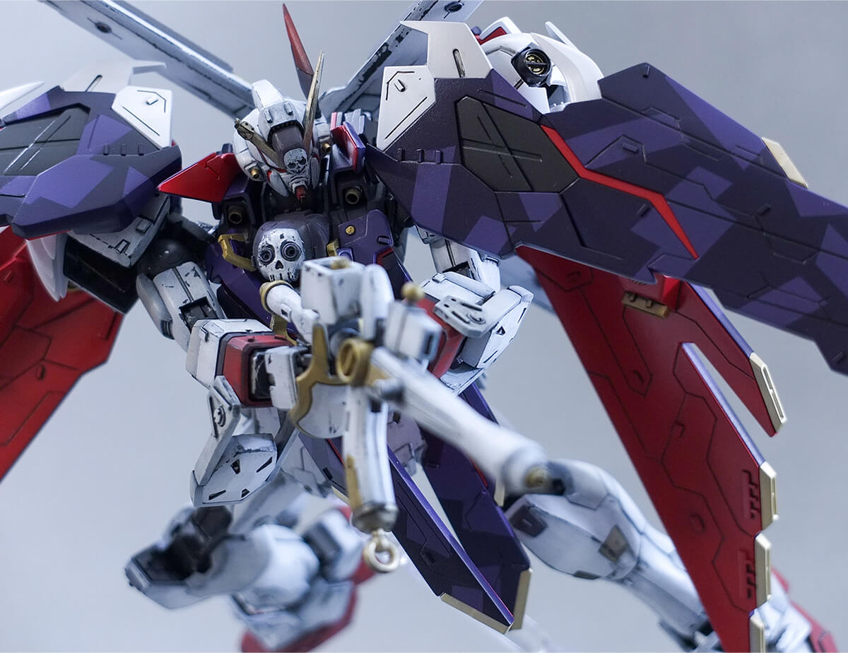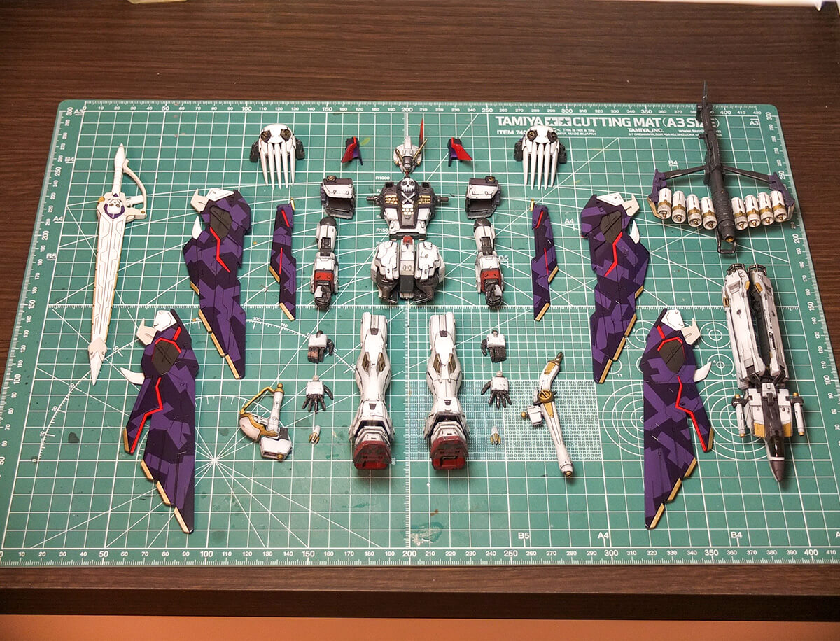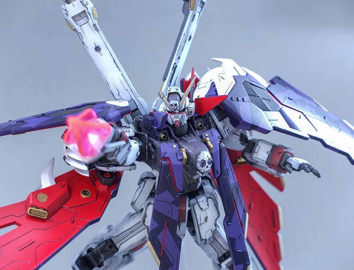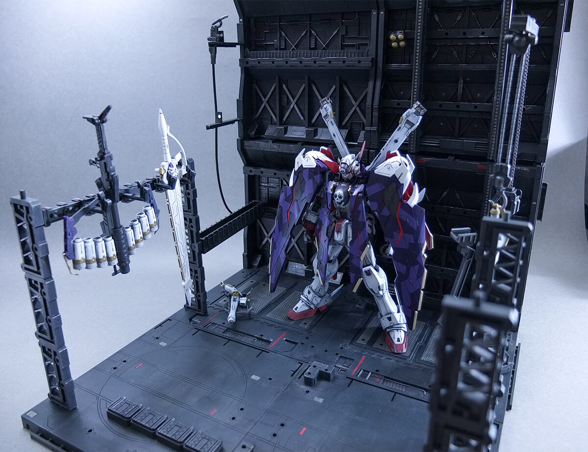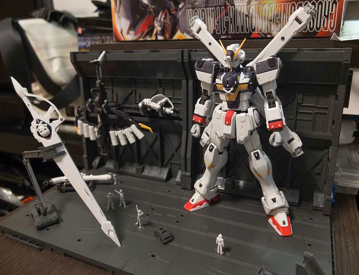 テーマは原作再現で、原作のワンシーンが印象に残ってたので、ボロボロのX1と新品のフルクロスユニットにしました。
