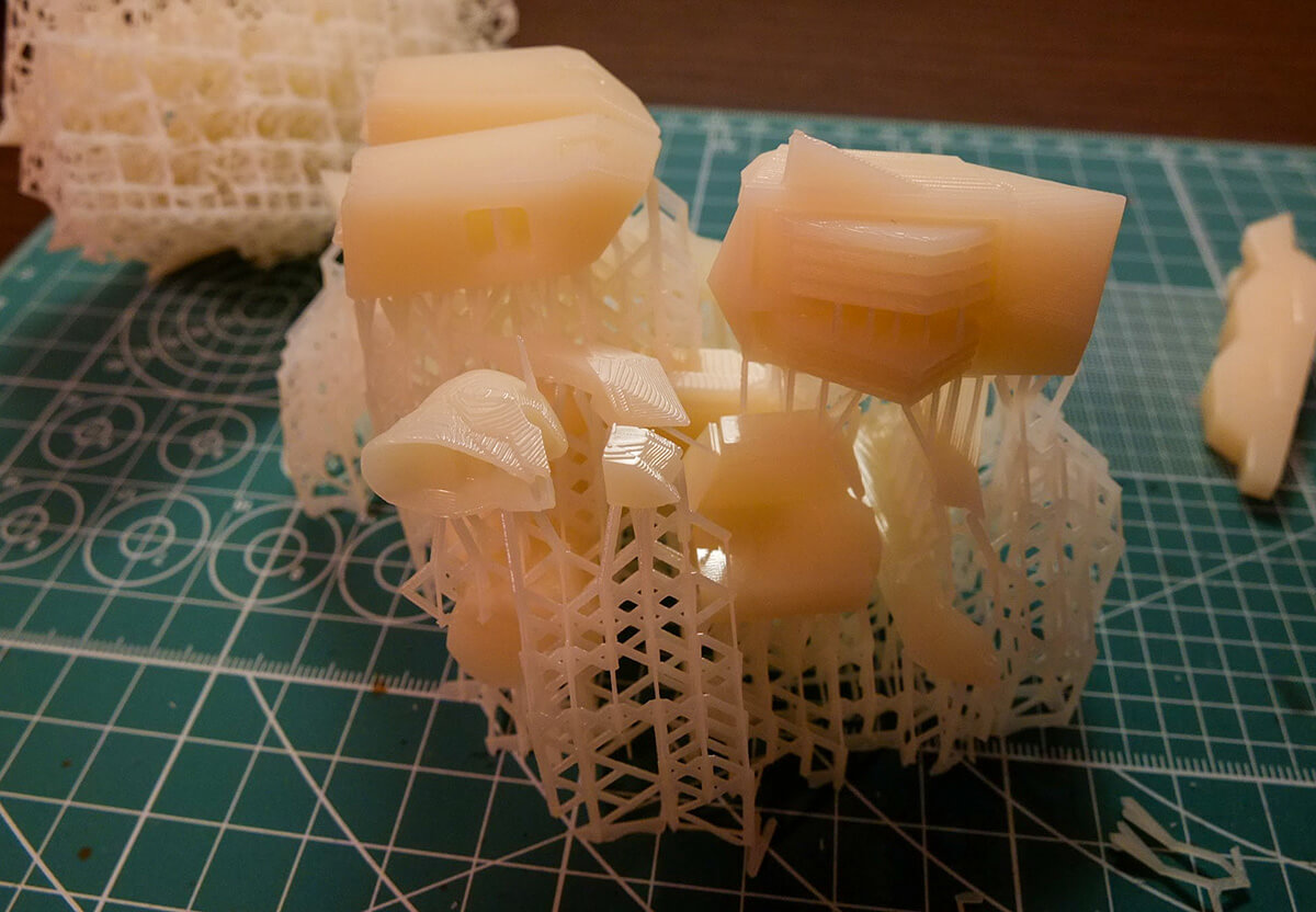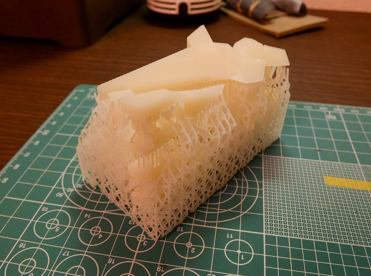 めちゃくちゃ硬いプラの塊で出力されます。