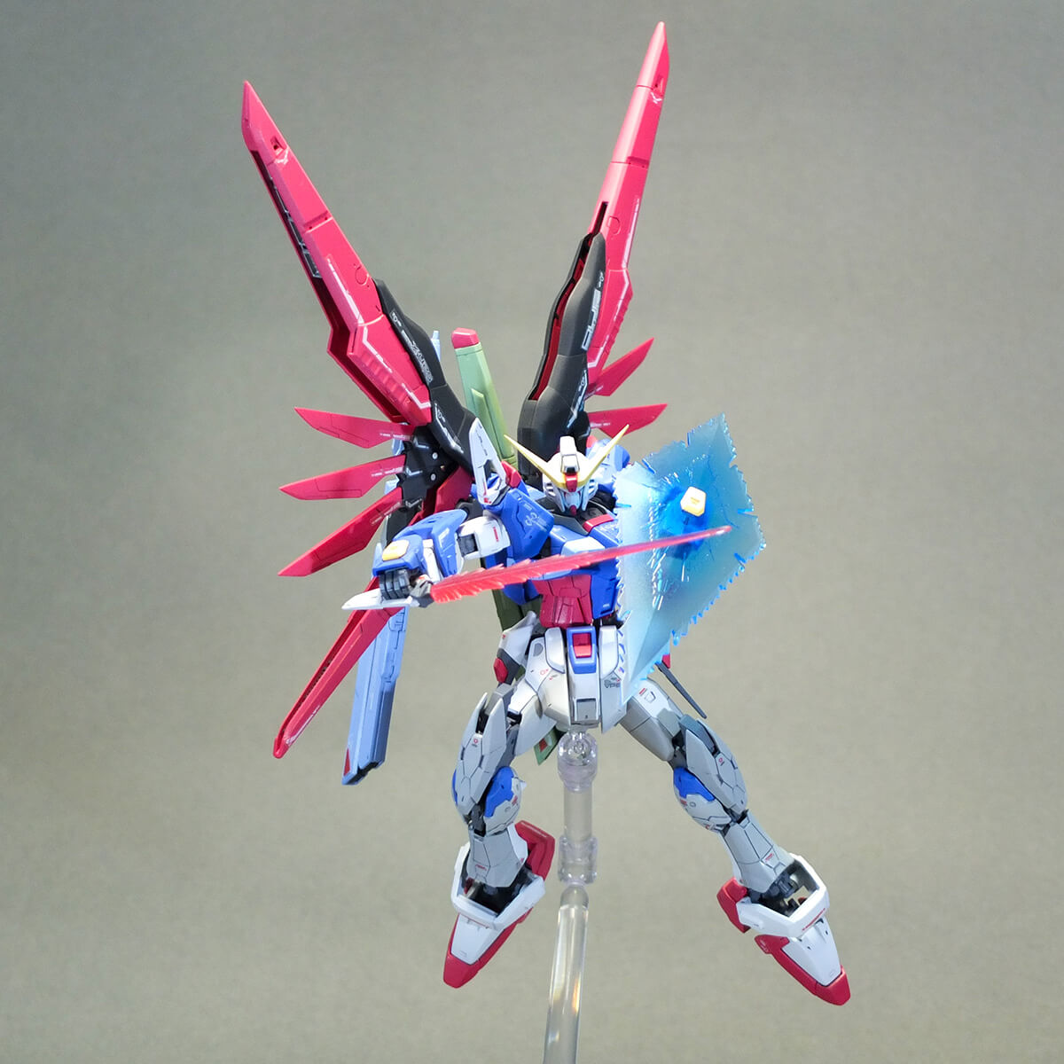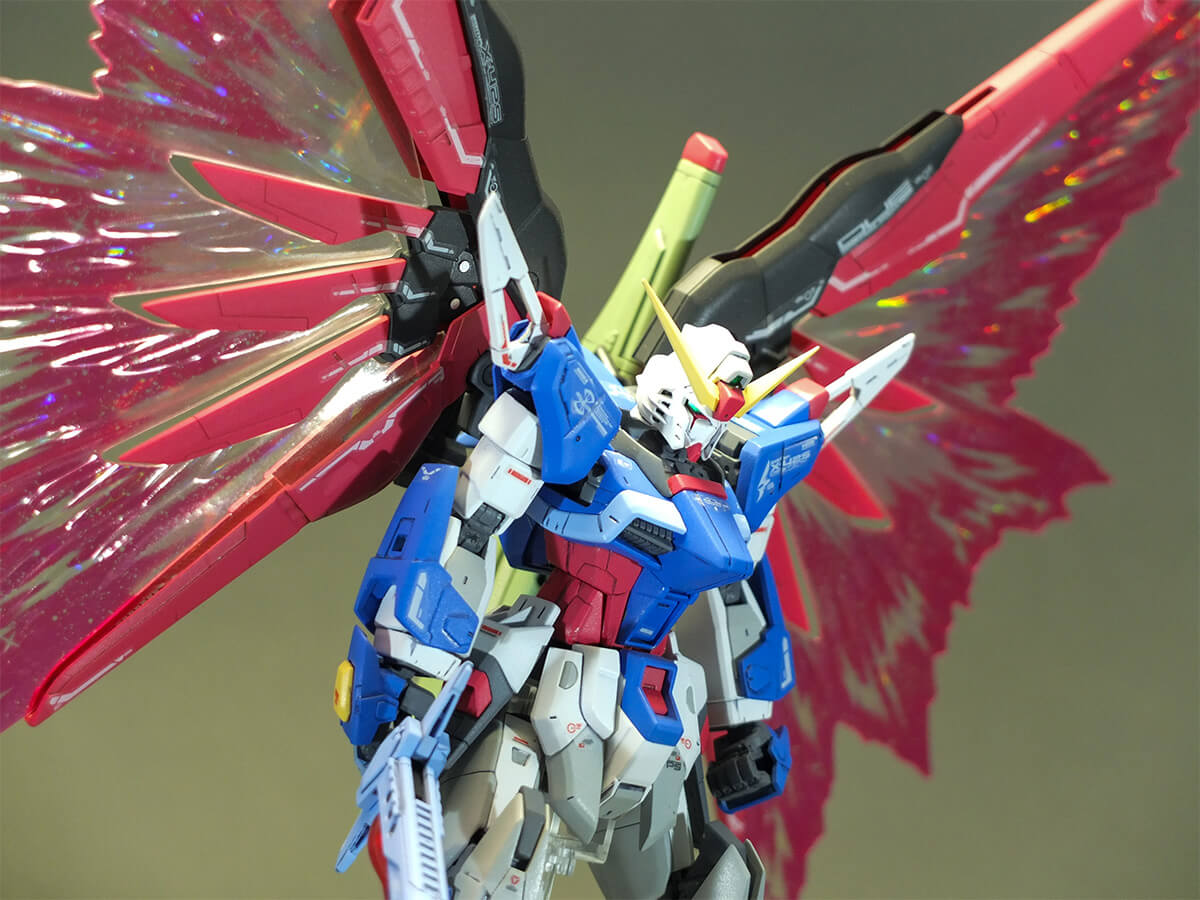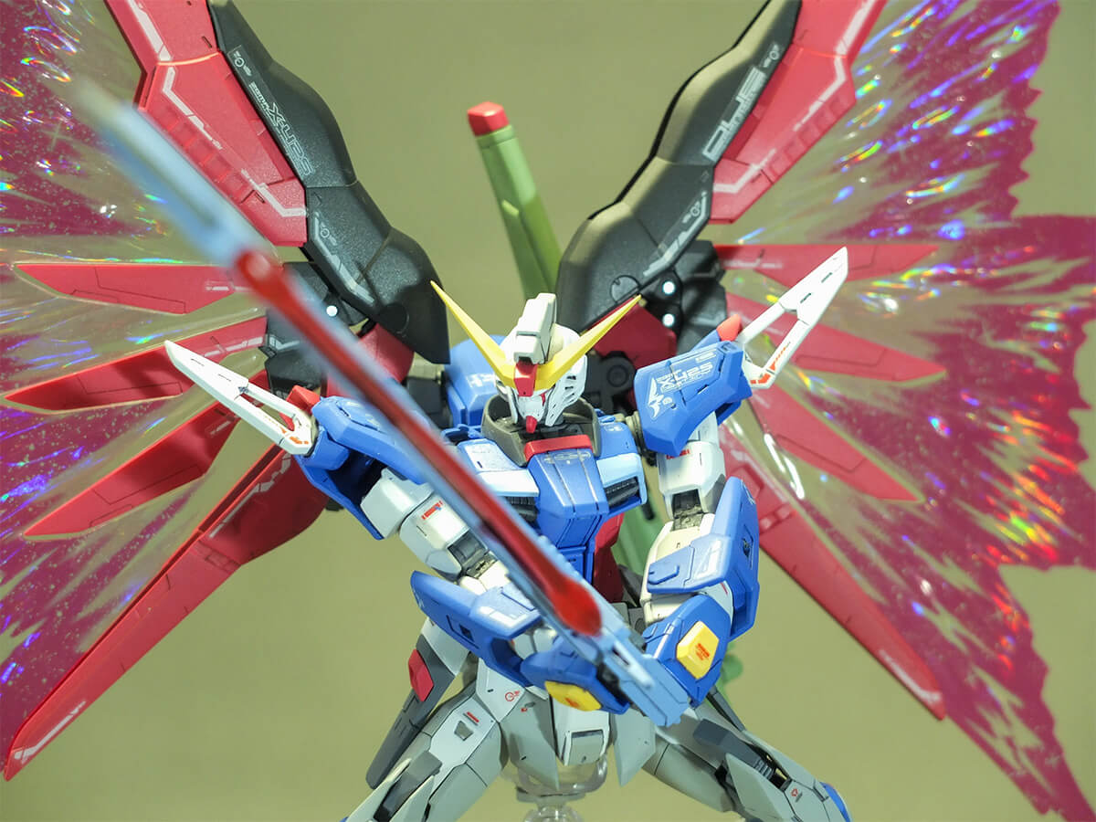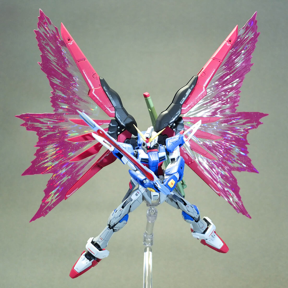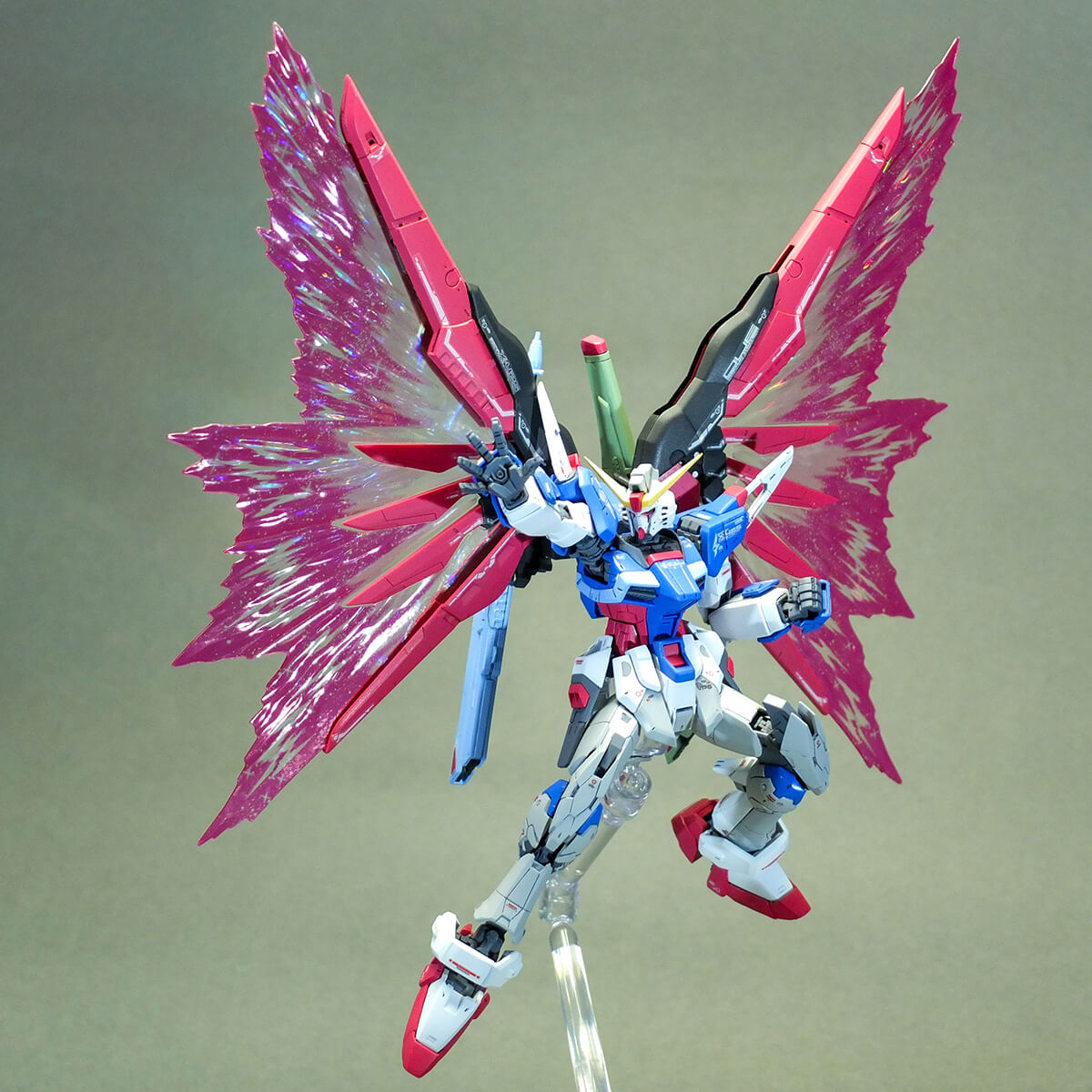 RG デスティニーガンダムにプレミアムバンダイ限定の光の翼をつけて作りました。