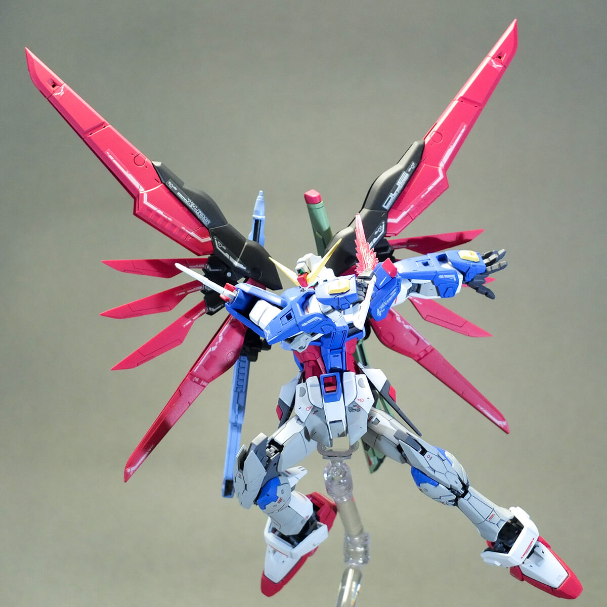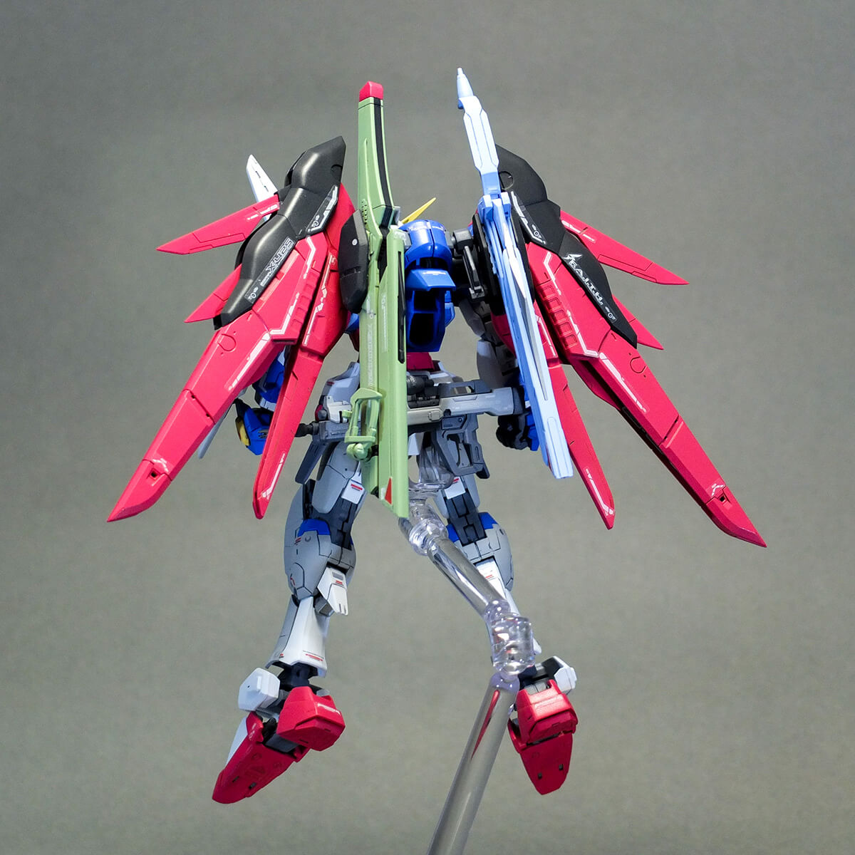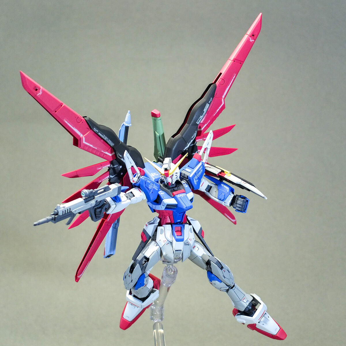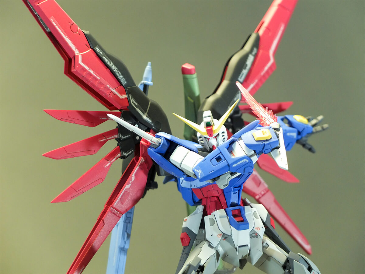 RG デスティニーガンダムにプレミアムバンダイ限定の光の翼をつけて作りました。