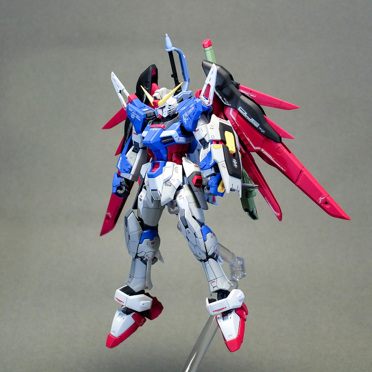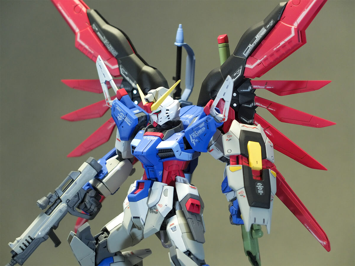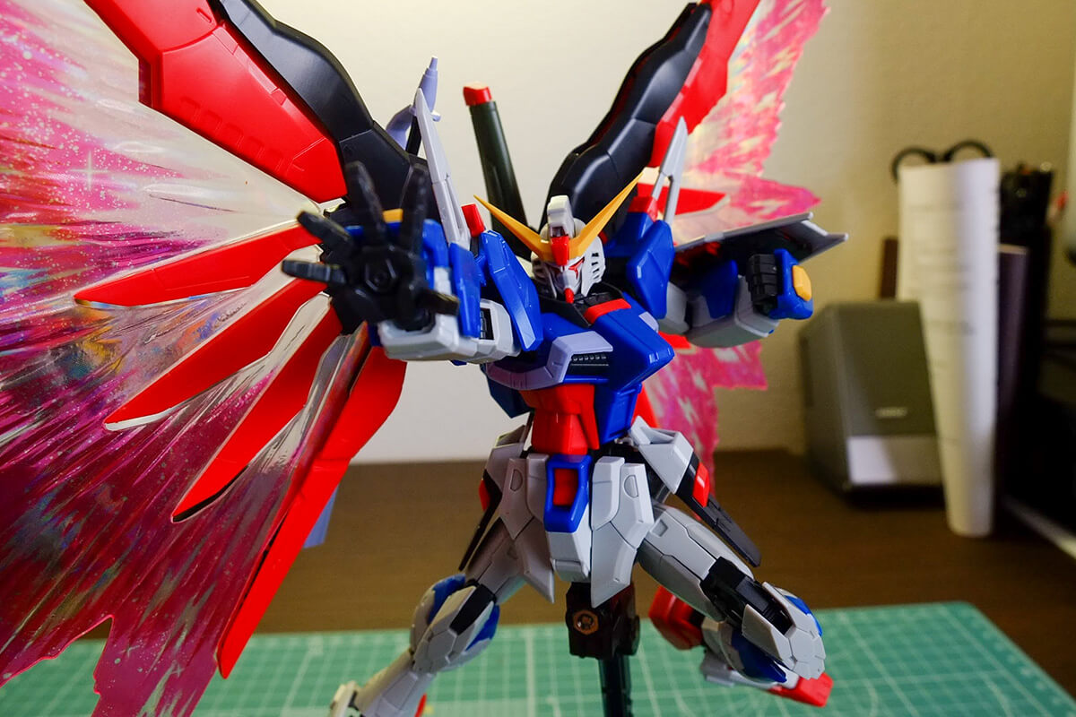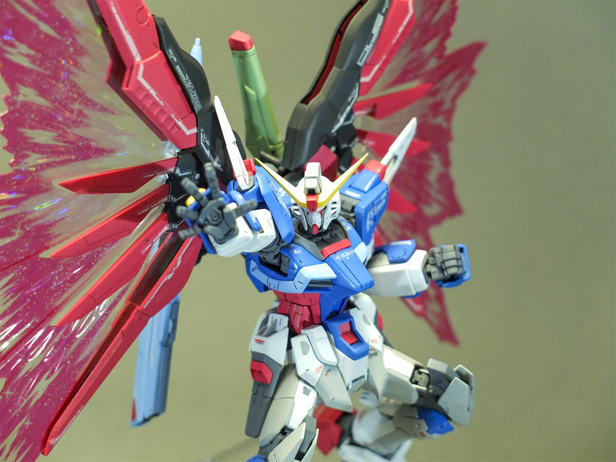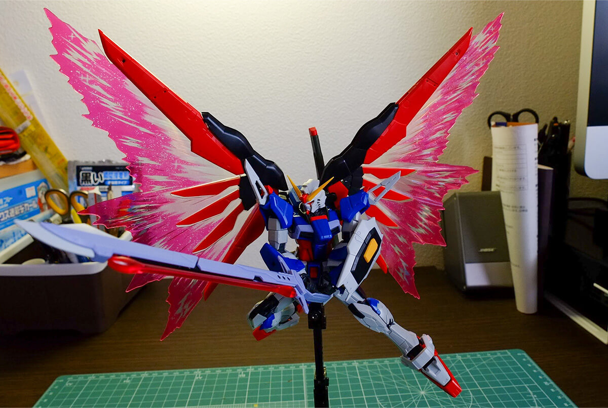 RG デスティニーガンダムにプレミアムバンダイ限定の光の翼をつけて作りました。