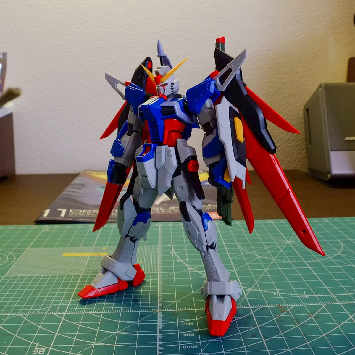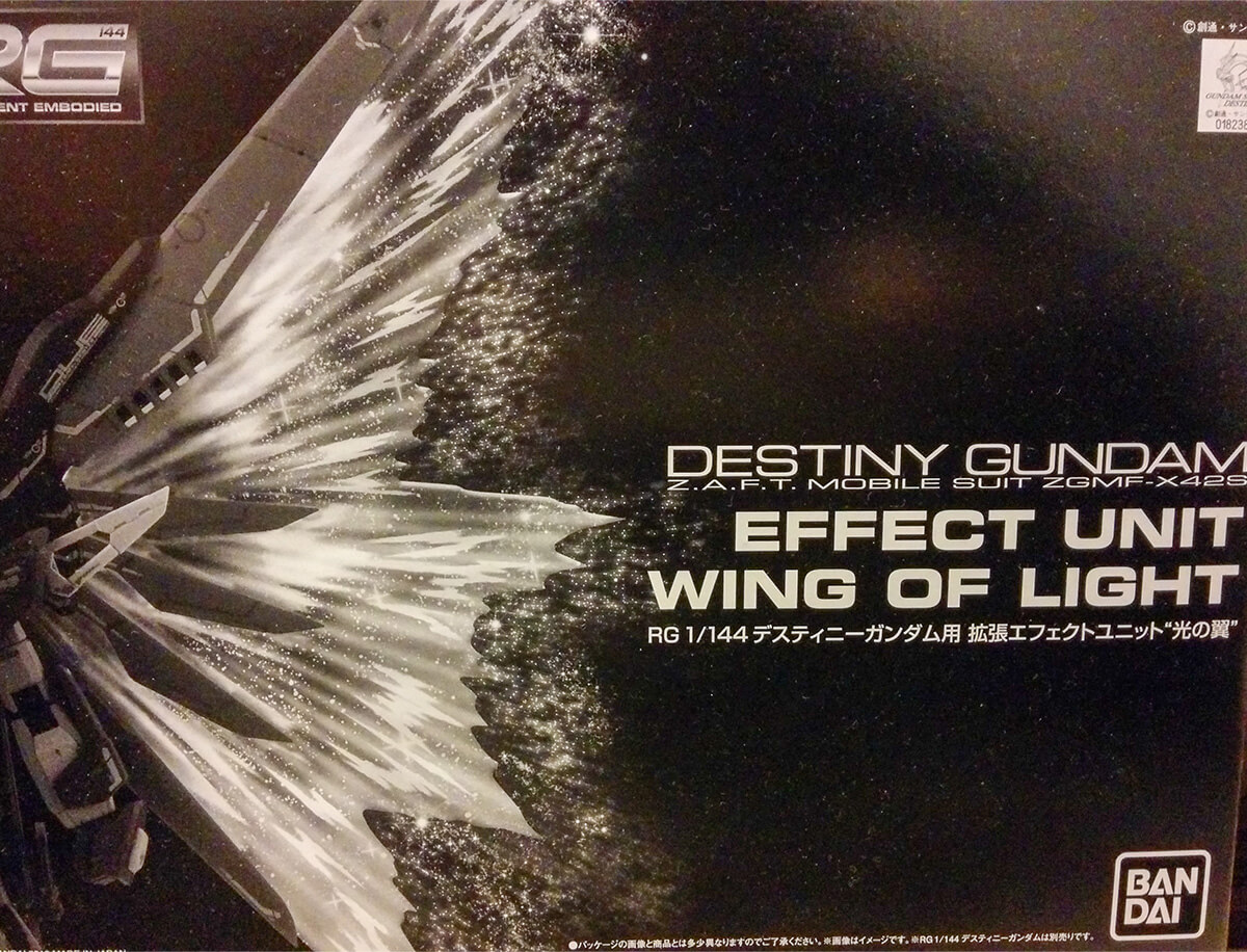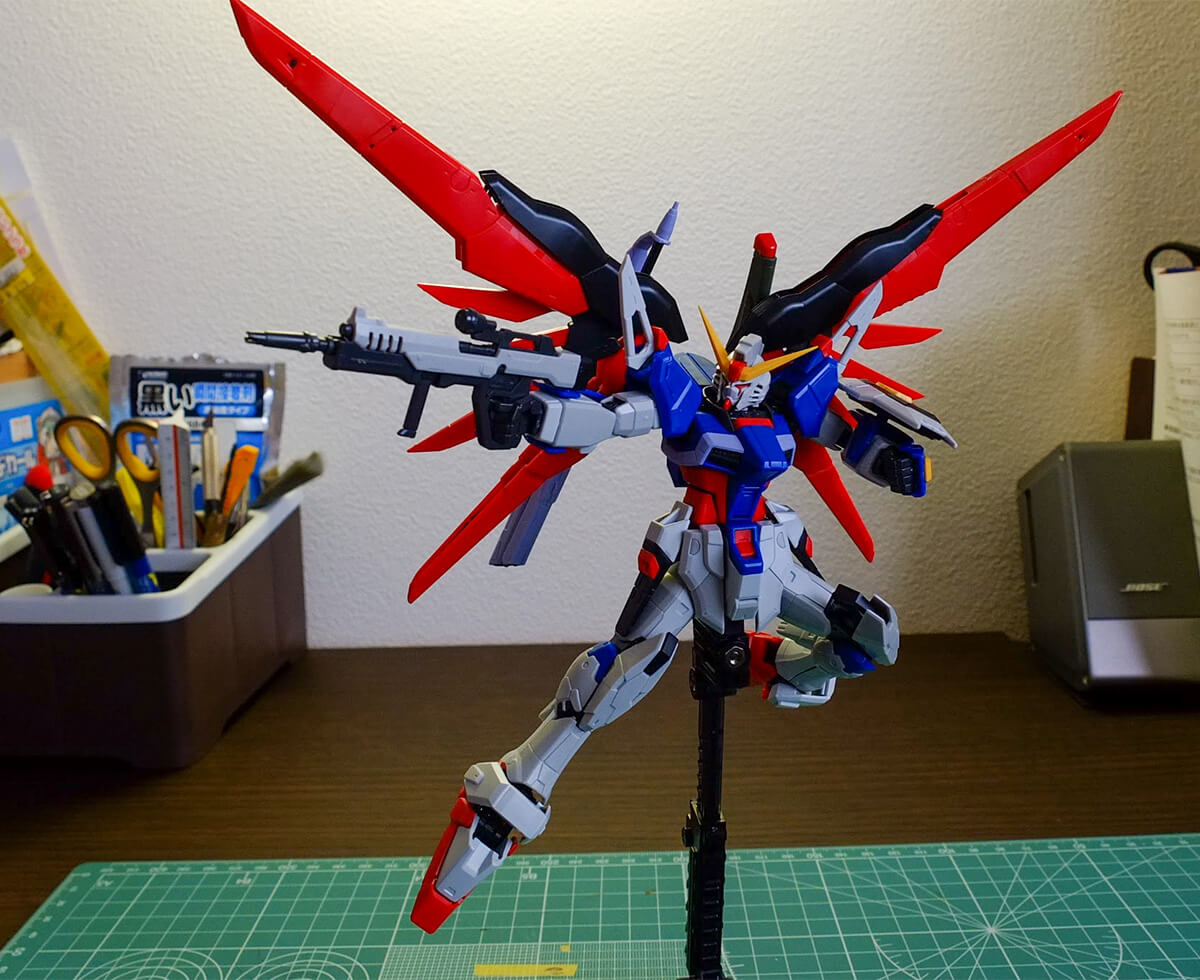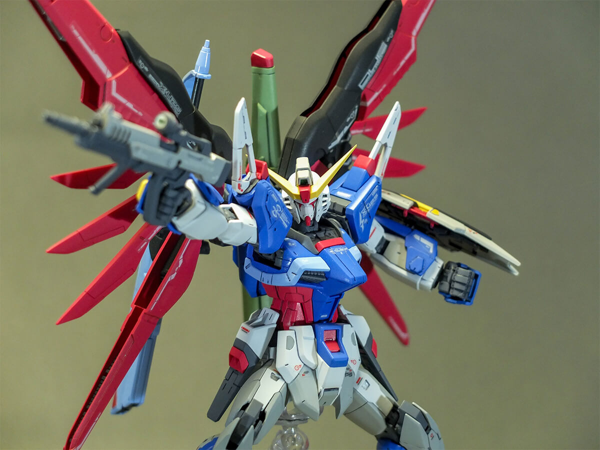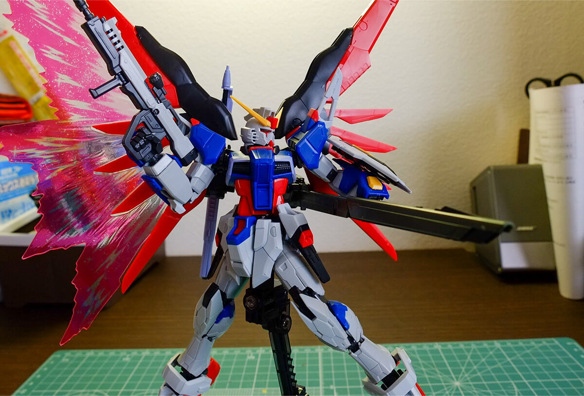 RG デスティニーガンダムにプレミアムバンダイ限定の光の翼をつけて作りました。