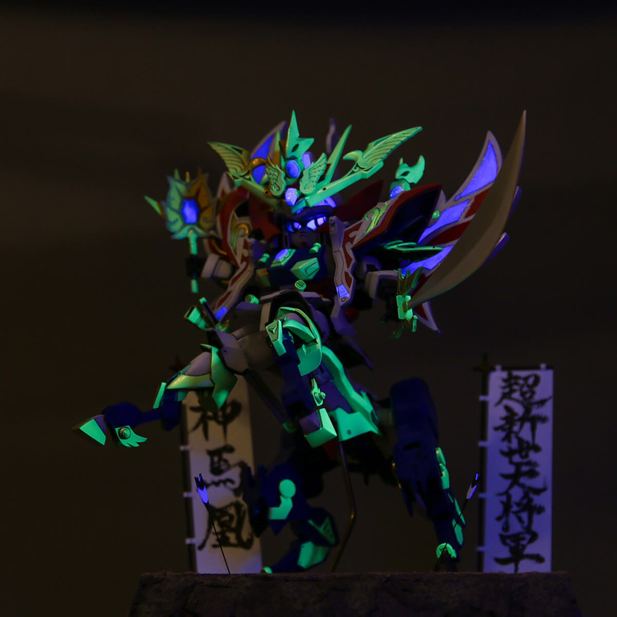 「今にも動き出しそう!」をテーマに、新世大将軍の最大の特徴である神馬凰形態を、最高にかっこよくすることだけを追求しました。