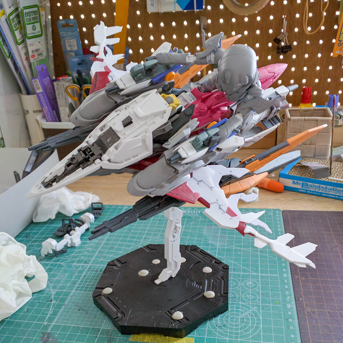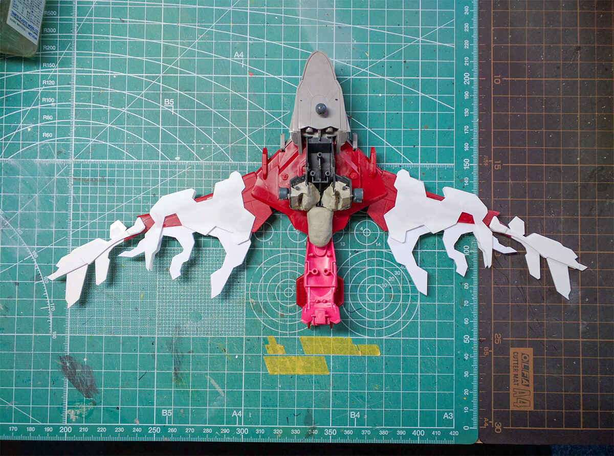 羽のボリュームが物足りないのでプラ板で盛りました。
