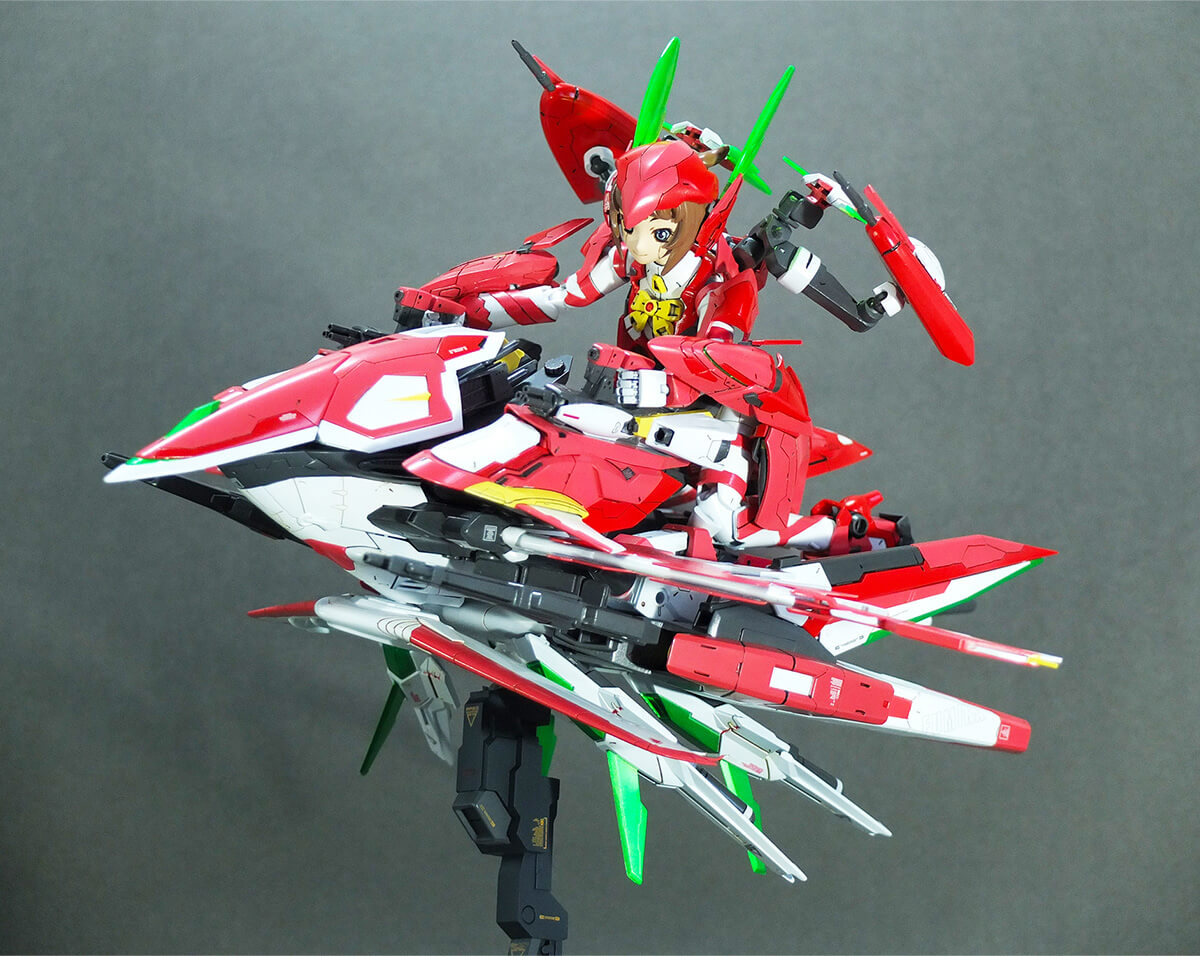 本体のふみな自体がHGにしては大きめサイズなので、それを乗せる方は更に巨大になり、最終的にMGレベルの大きさになりました。