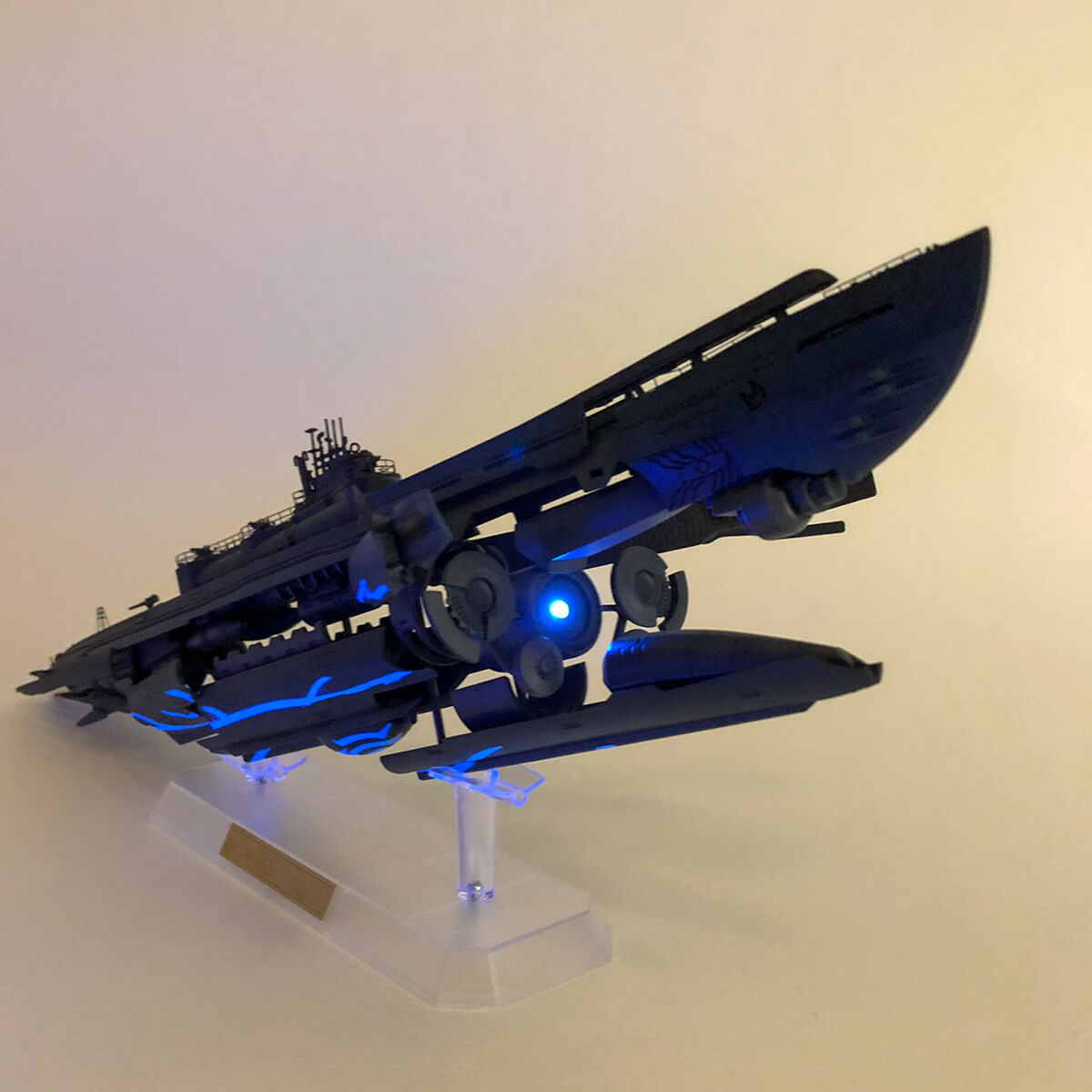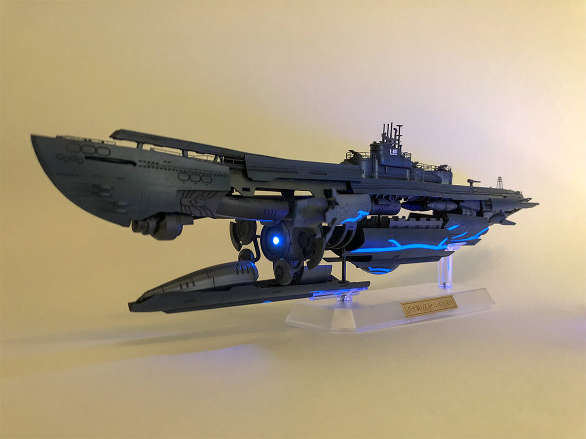 超重力砲を表現するため、ワイヤレス電力供給システムX-BASEを使ってイ401の内部にLEDを仕込みました。
