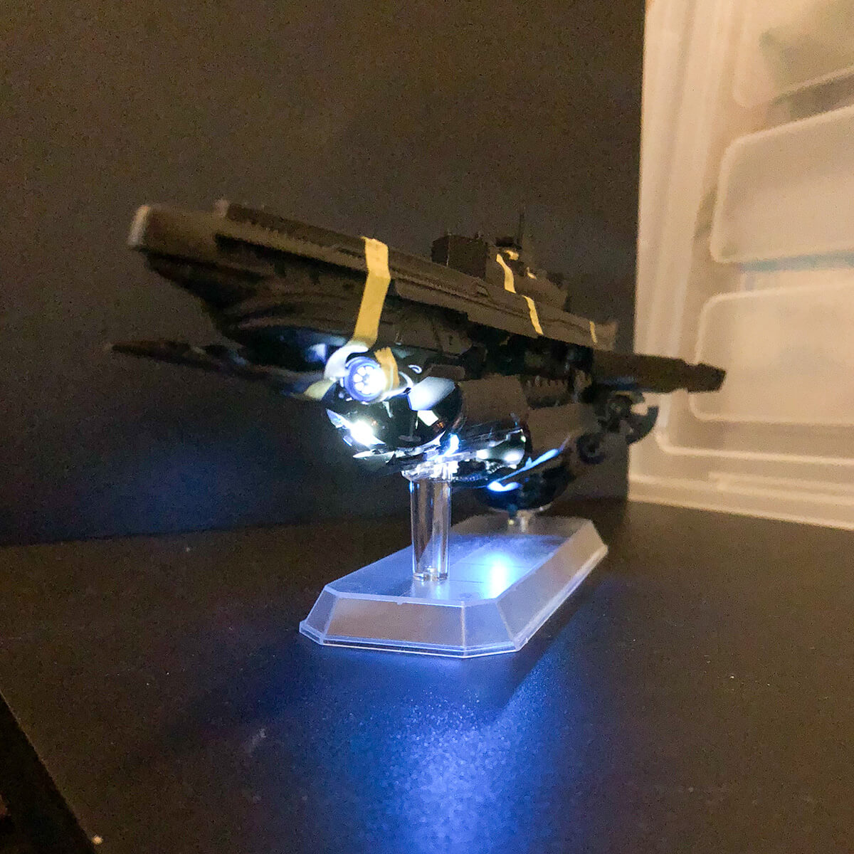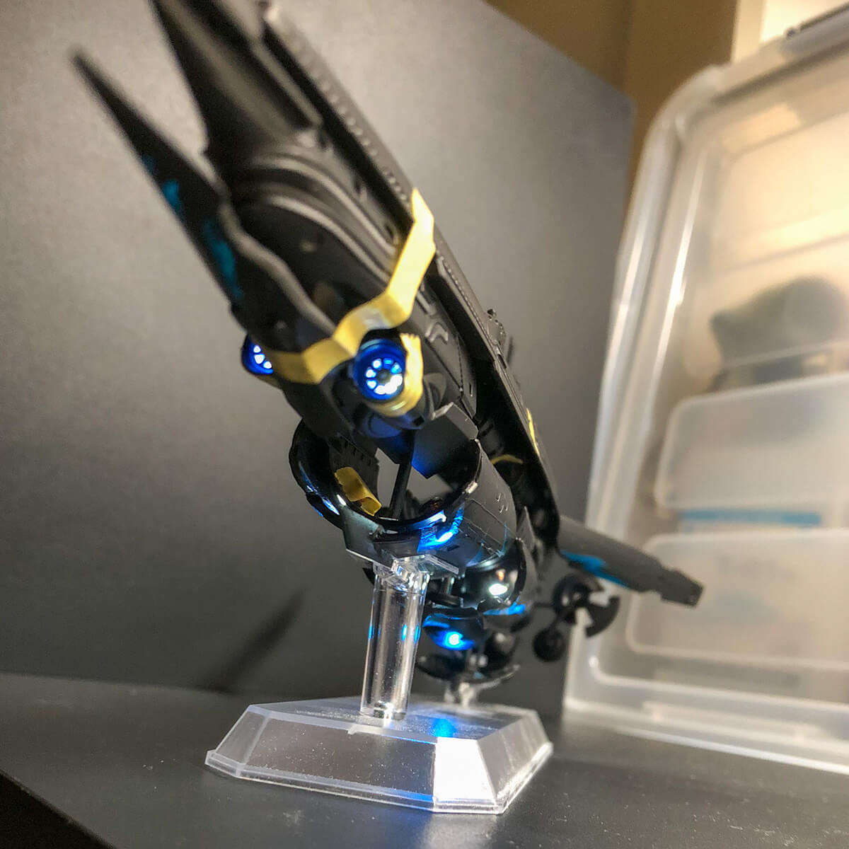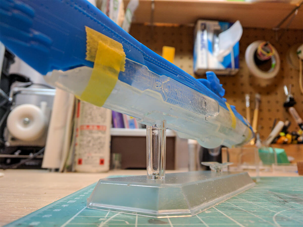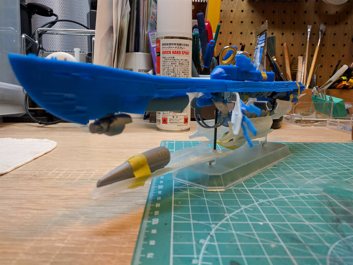 超重力砲の砲口内とスラスターだけLEDを残して、バイナルパターンは付属のスタッカーを使いました。