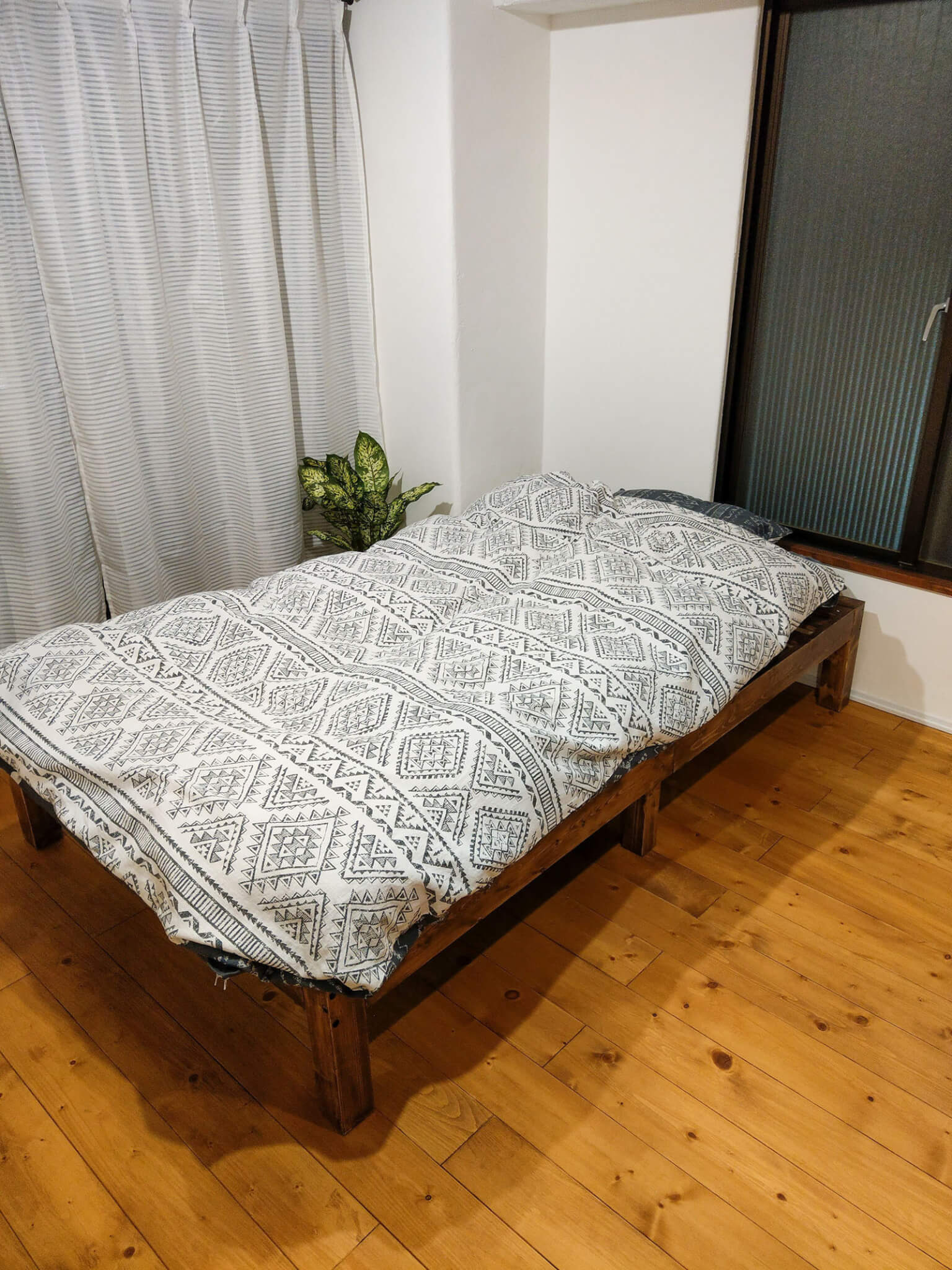 というわけで、安いベッドフレームでもDIYでちょっと手を加えればいい感じになるよって話でした。