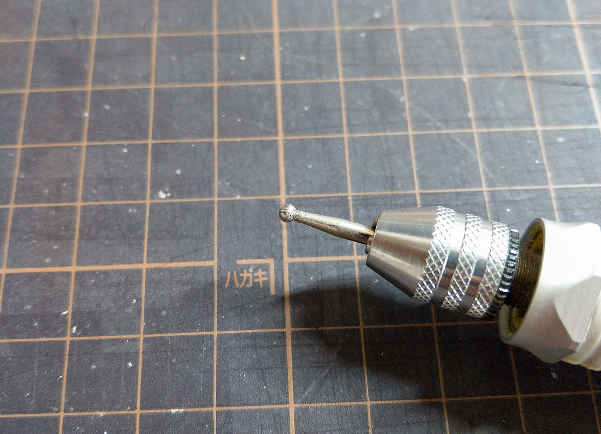とにかくひたすら削るんですが、10分おきにリューターを休ませないとモーターに負荷がかかるので最悪壊れます。