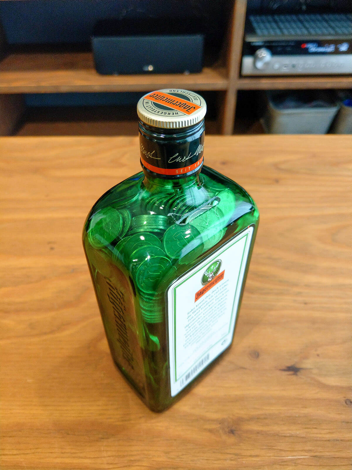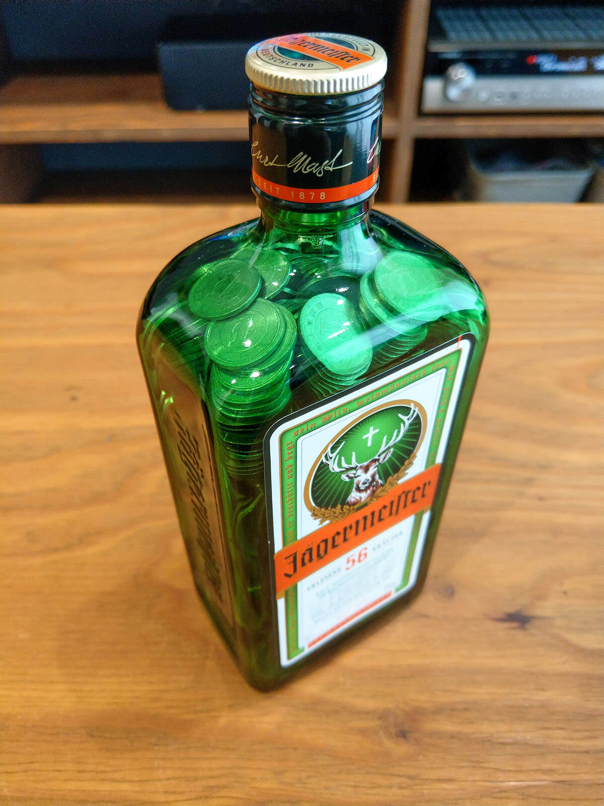 使ったボトルはイエーガーマイスターってリキュールの空き瓶です。