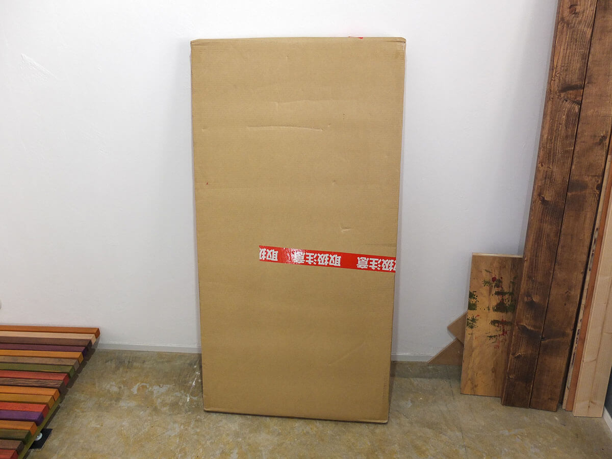 前回は4本脚タイプだったんですが、微妙に天板が歪んでたので内股気味になったのが嫌だったので、どっしりしたものにしました。