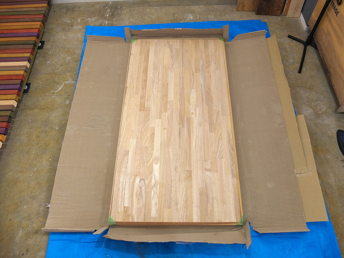 選んだ材はゴムの集成材です。見た目と値段がちょうど良かった。