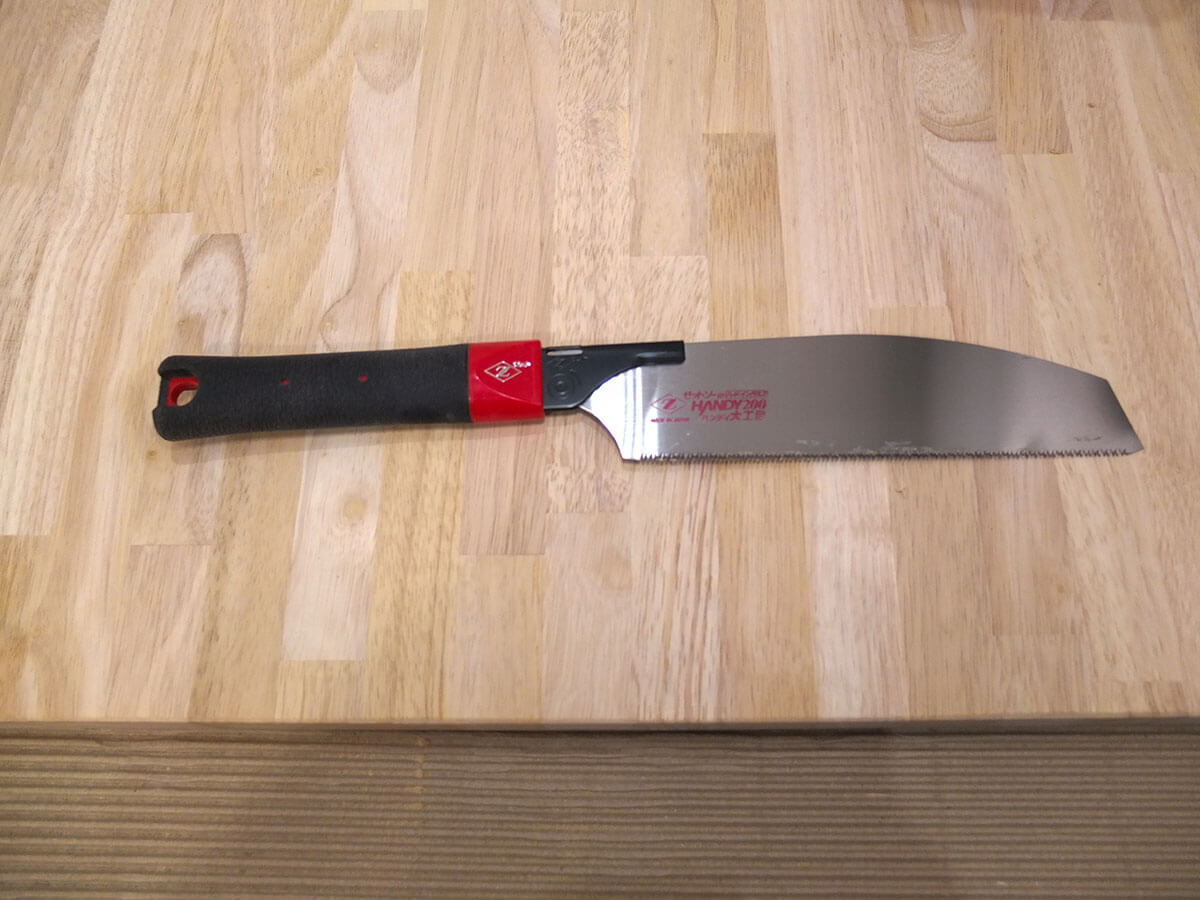 - のこぎりで縦に二箇所削る