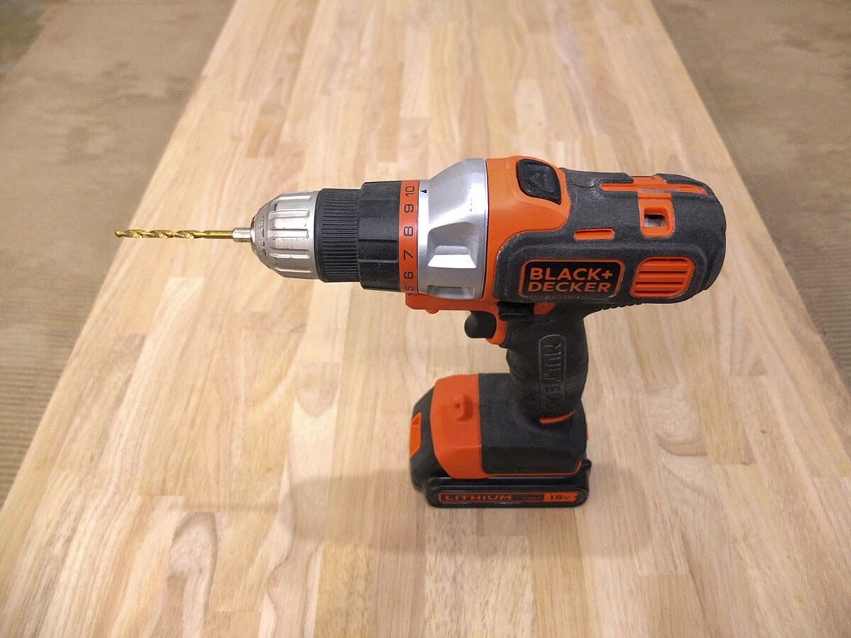ドリルで軽く下穴を開けておきます。