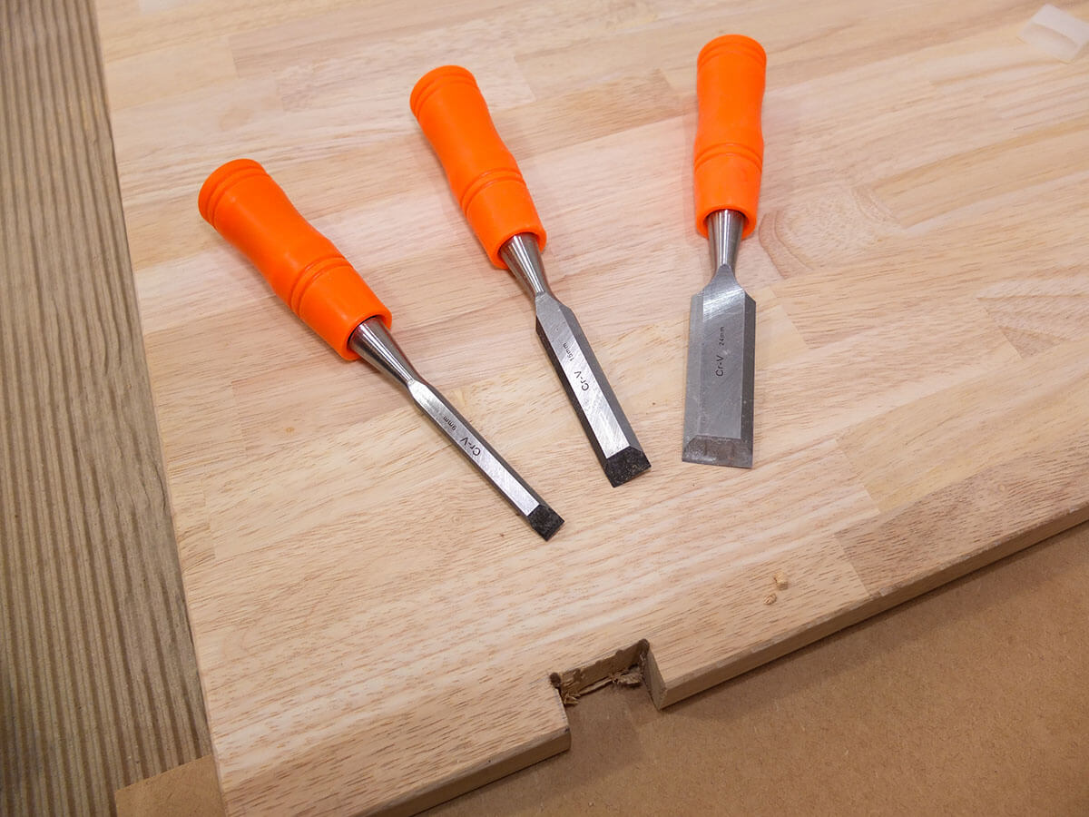 - ノミでドリル穴を削る