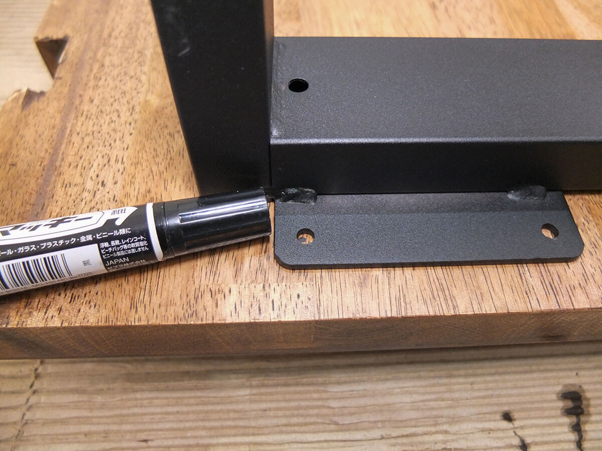 マジックでネジ穴にマーキングします。
