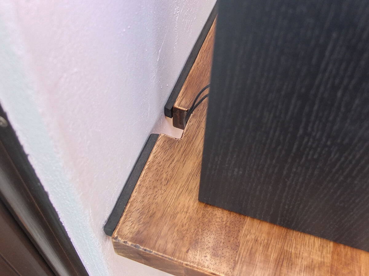 今回は左右均等に同じ箇所を削りました。スピーカーの配線がどうしても左右に分かれるので。