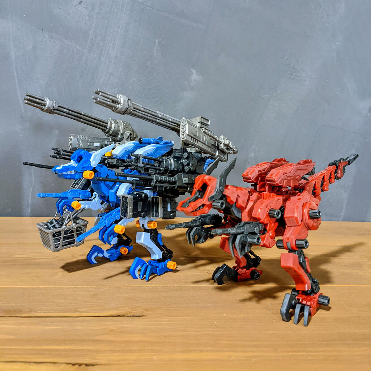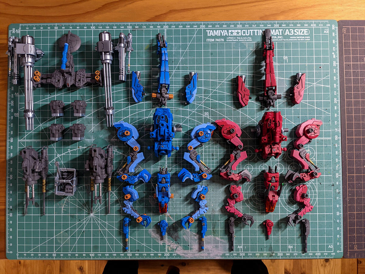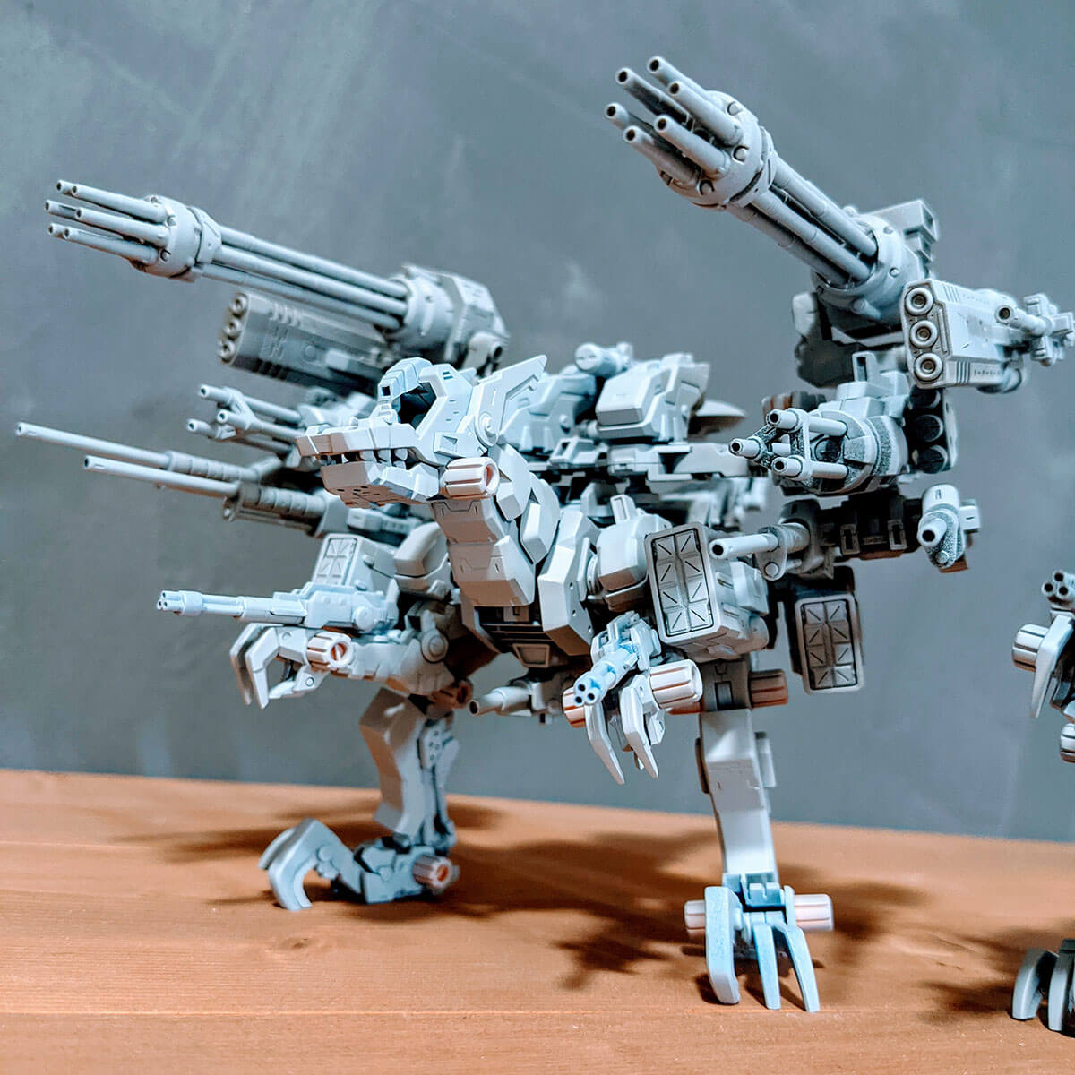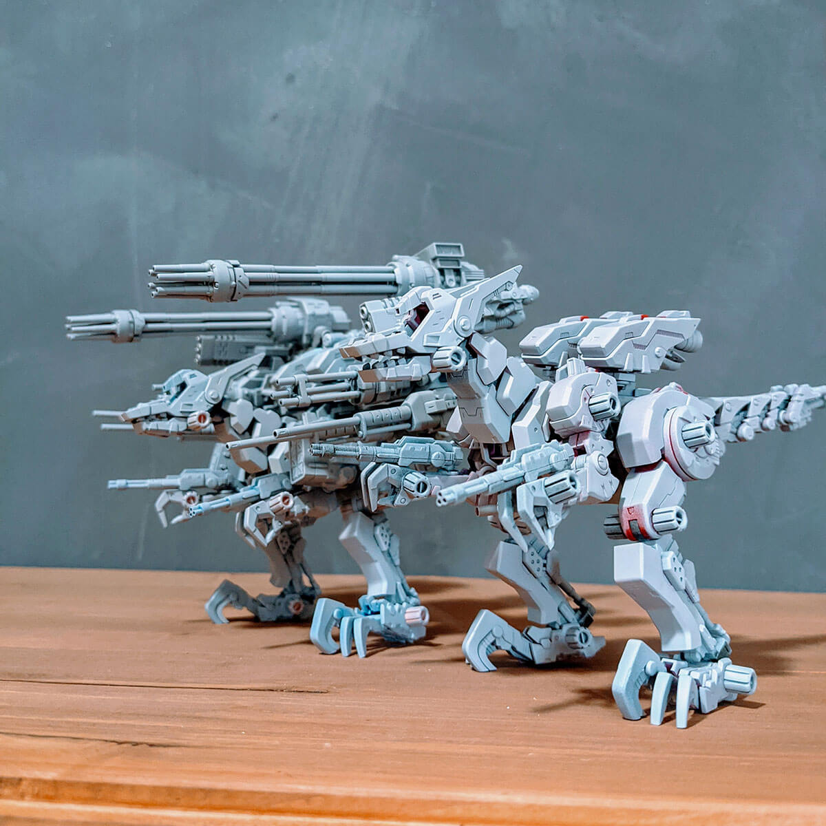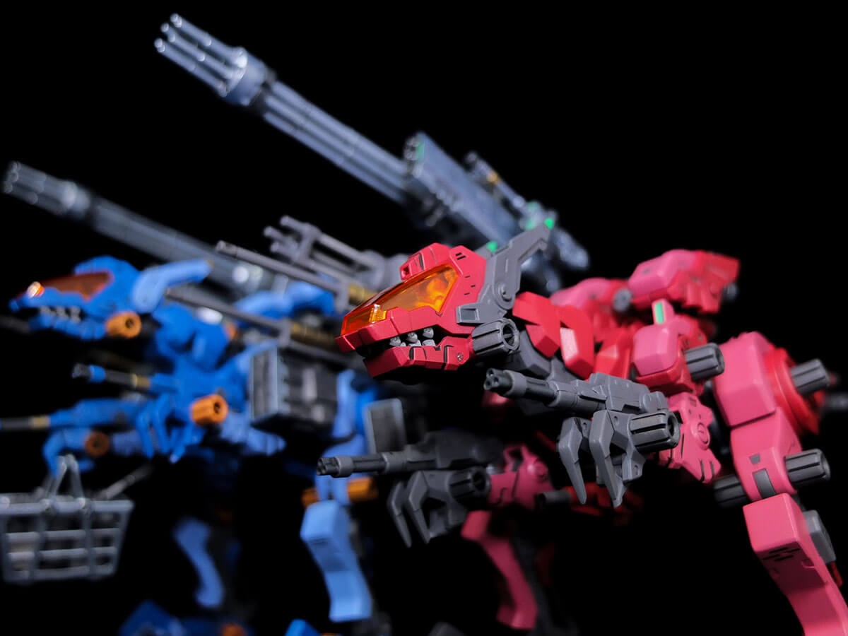ライガーゼロ以来の複数同時製作で意外と時間がかかりましたが、色違いの塗り分けは楽しかったですね。