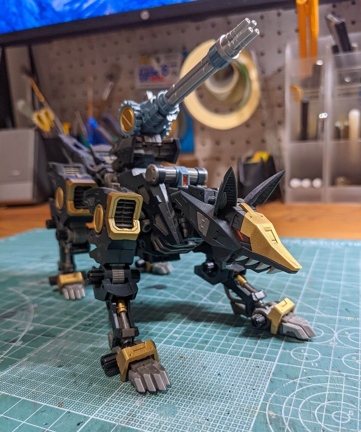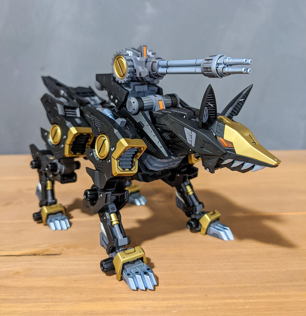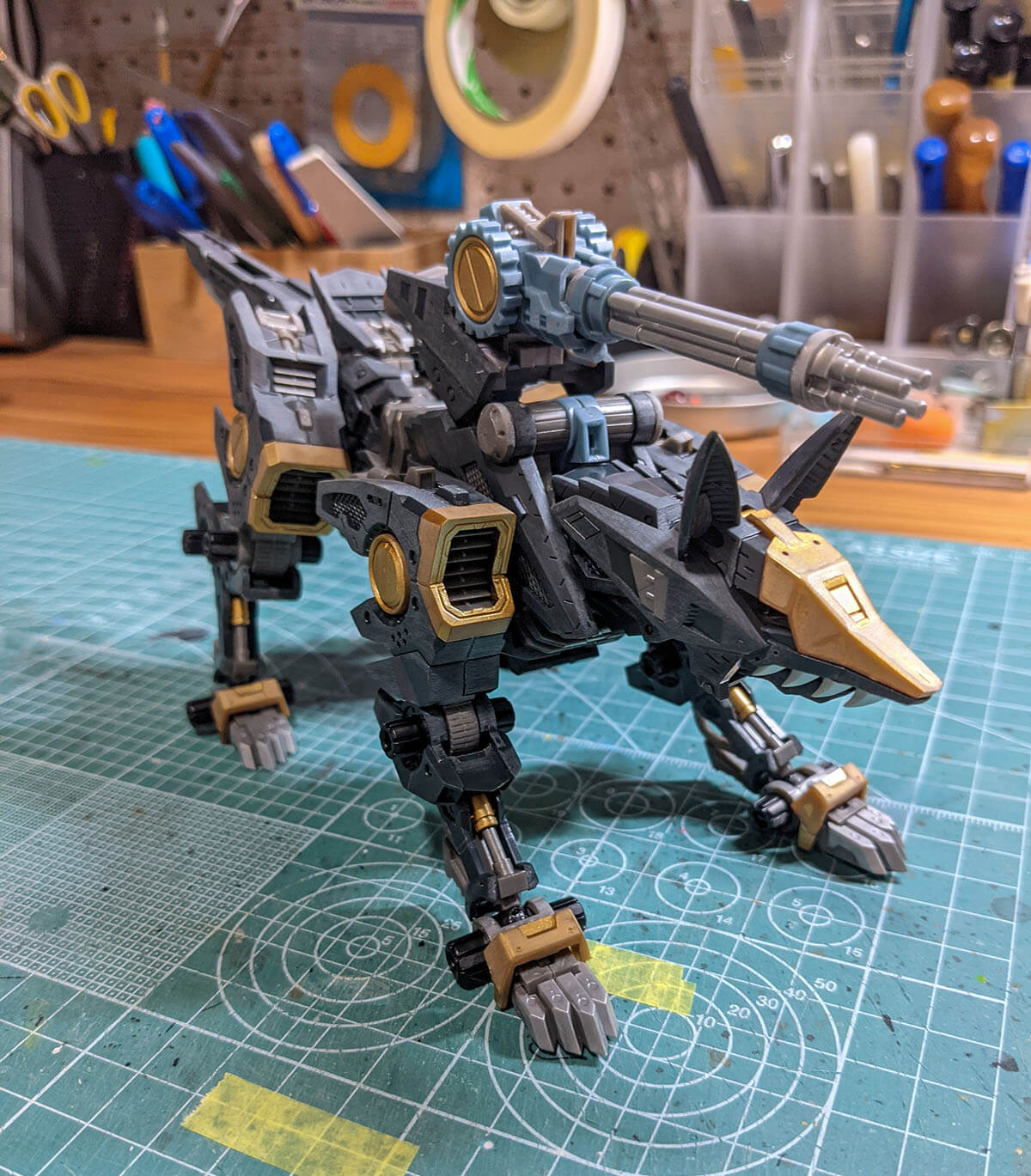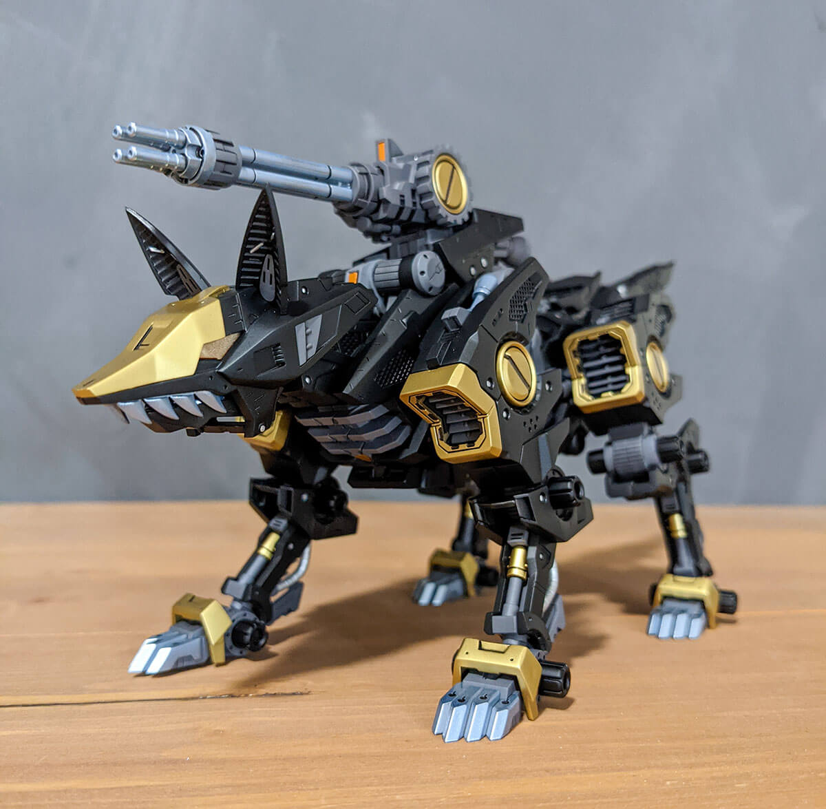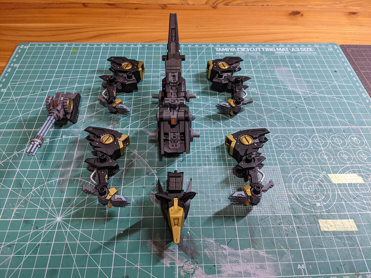 後で金色パーツだけ追加でヤスリがけして再度吹いておきました。