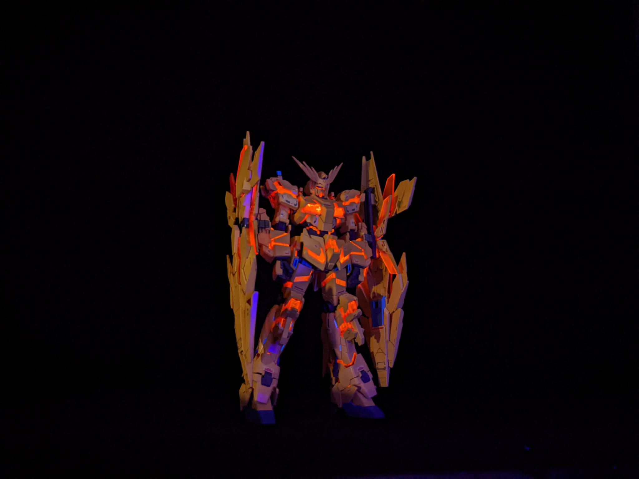 同じくブラックライトを使ったユニコーンガンダム3号機 フェネクスでも比較します。