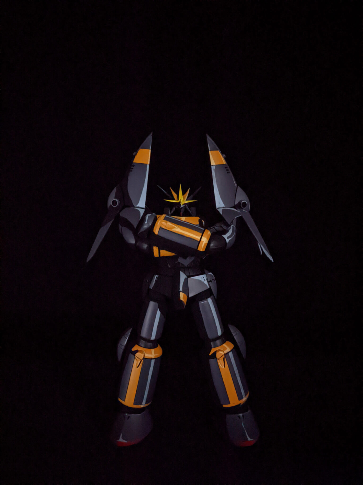 今度は黒色無双で黒を背景と完全に同化させる見せ方で作ったガンバスターです。