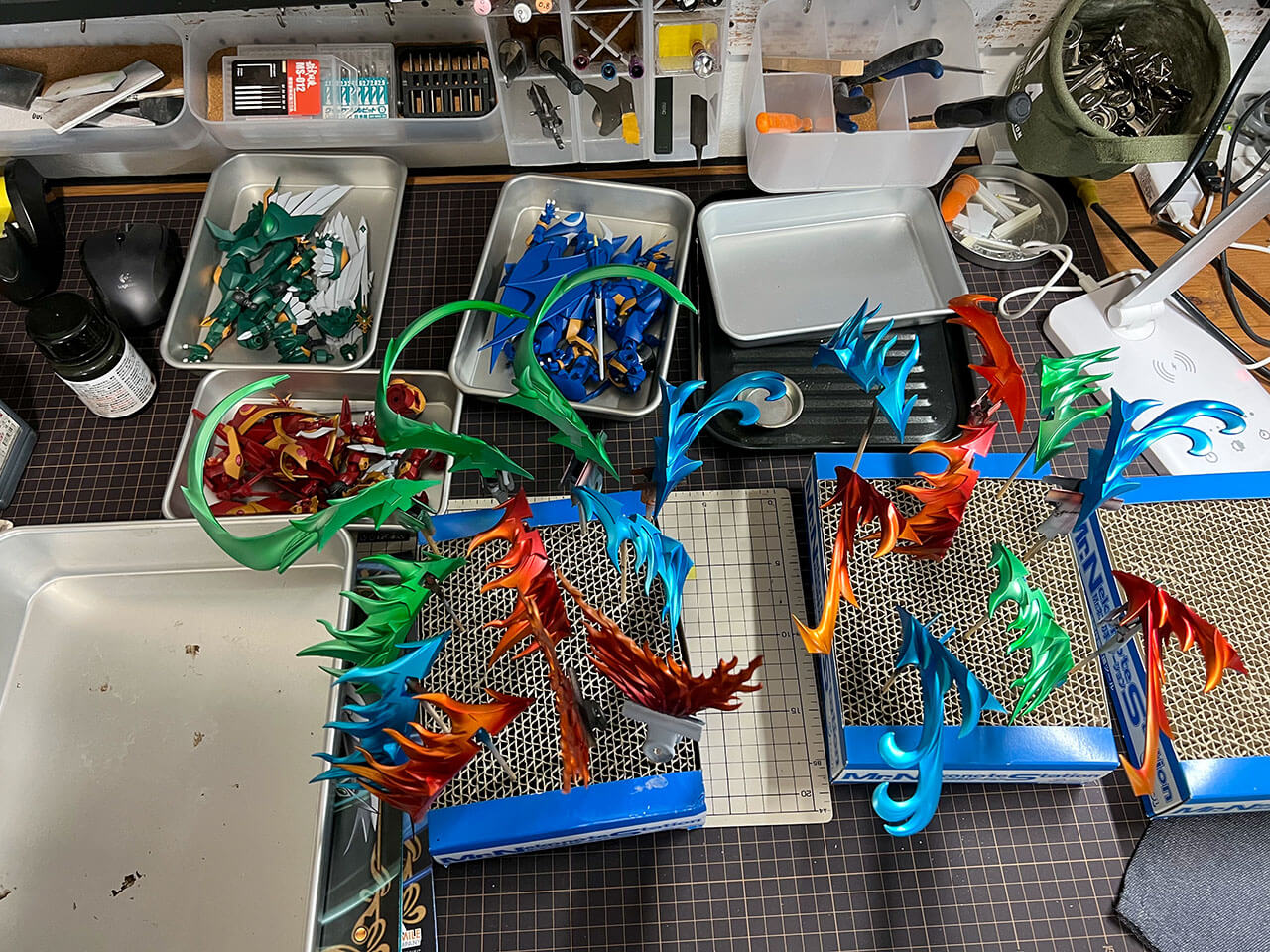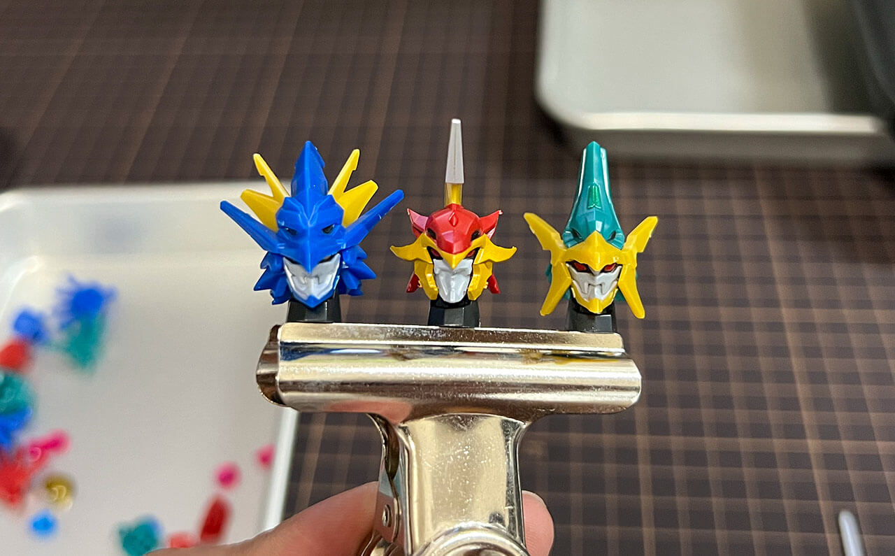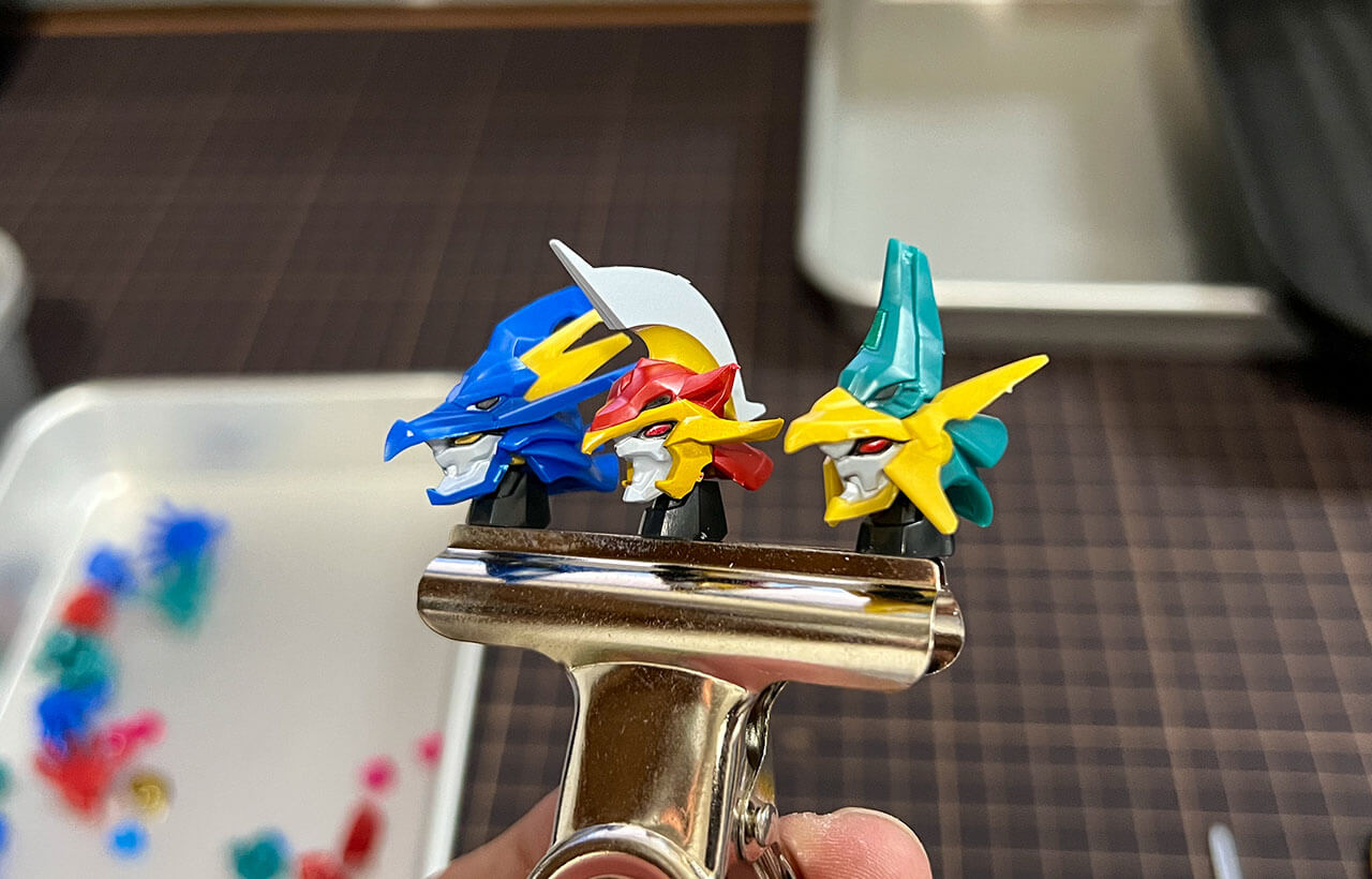試行錯誤しながらなので、最初の1体目と最後の3体目で影の付き方が違ったりして大変でした。3体同時にやる内容じゃなかったですね…。